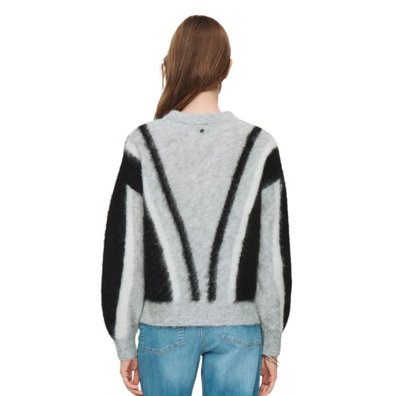 This graphic knit sweater is a standout winter piece, crafted from a luxurious blend of 32% alpaca, 32% wool, 30% polyamide and 6% elastane for a warm, soft and slightly stretchy feel. Weighing 0.35 kg, it features a striking grey base with bold black and white abstract patterning, finished with a relaxed fit and soft ribbed trims. Perfect for pairing with denim or tailoring, it brings effortless style and comfort to cold-weather dressing. To preserve its quality, hand wash only, dry flat, avoid tumble drying, bleach or ironing, and expect minimal shrinkage of up to 3%.